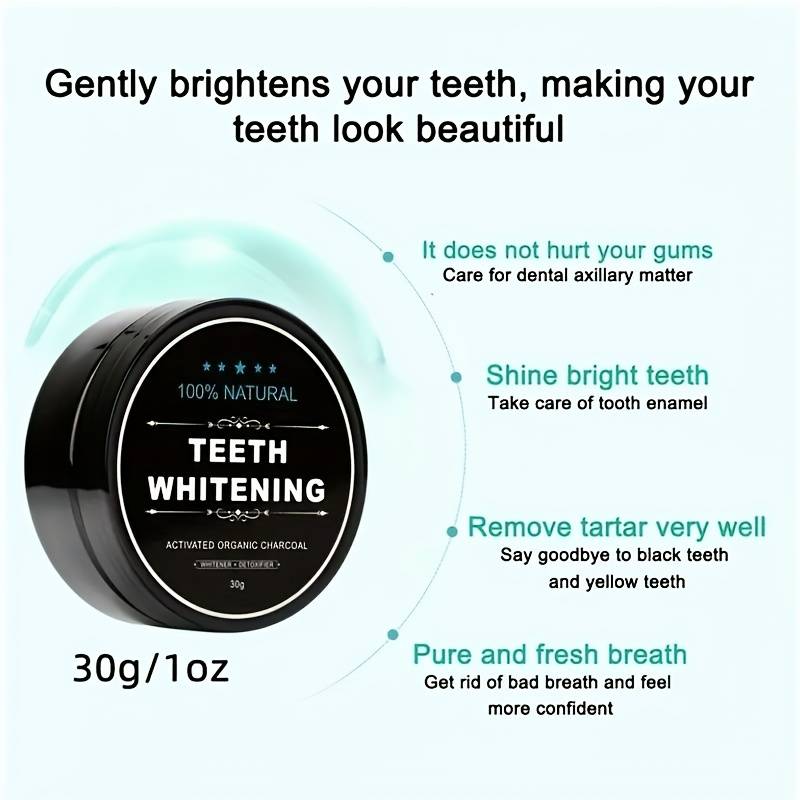1. Natuurlijke Tandenbleking: Ons tandbleek houtskool poeder maakt gebruik van de kracht van actieve houtskooldeeltjes om veilig en geleidelijk oppervlakkige vlekken en verkleuringen van je tanden te verwijderen. De natuurlijke bleekmiddelen in houtskool helpen je tanden op te frissen zonder schade aan het tandglazuur.